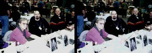Elliott Swanson's hobby is 3D photography. Armed with two different cameras, he attended the Millenium Expo in March and shot many 3D pictures of the event. The first picture is the probably the most well-known type of 3D picture, called an anaglyph. You will need a pair of red/blue (cyan) glasses to see Mike Fritz's Voight-Kampff model in 3D.