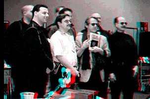 Elliott shot this picture with a large camera known as an S1. An S1 camera costs about $3500 and was one of the cameras used while shooting the 3D pictures for this year's Sports Illustrated swimsuit issue. An anaglyph picture is composed of two images which are shot by a pair of lenses seperated by about 2.5 inches ( the approximate distance between your eyes ). After the pictures, called a stereo pair, are developed they are scanned and converted to anaglyph 3D using Adobe Photoshop, or a similar graphics program.