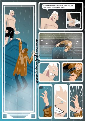 "It's been a long time since I start the idea of an adaptation, of Blade Runner to comics language and distribute it freely using the internet (only in dreams I would have money to pay the copyrights to publish it in the good ol' paper way). But doing it is more to satisfy myself 'cause I love this movie and when the Marvel comics adaptation came, I simply feel horrible about that work! So since that time, I dreamt of making my own version of the film. With my entrance in the world of digital art things sems to be more viable. The difference is instead of the gothic look the movie shows, I decided to put an art deco mood, inspired in the sceneries of Batman Animated and Dean Motter's Mr. X. It's been hard work, but I think i'm finished until the end of the year now!