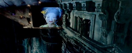 You may need to watch the extras/making of to understand what is happening here, but basically a totally new scene has been created of downtown. Taking a still and placing images over the top has created a new perspective of china town.